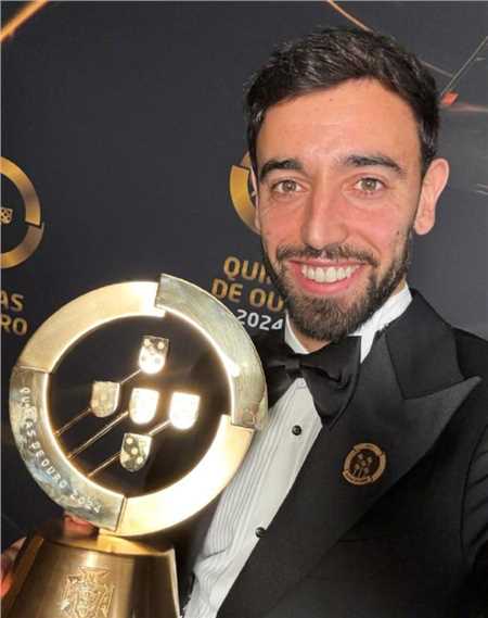 曼联官方写道:“在当地时间昨晚举行的2024年quinas de ouro晚会上,b费荣获葡萄牙足协颁发的奖项,该奖项旨在表彰优秀的葡萄牙球员或职员。恭喜我们的队长!”