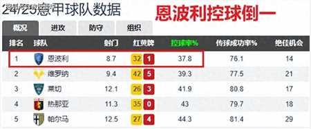 这导致他们控球率仅有37.8%……不但是意甲最低,还是五大联赛最低的。