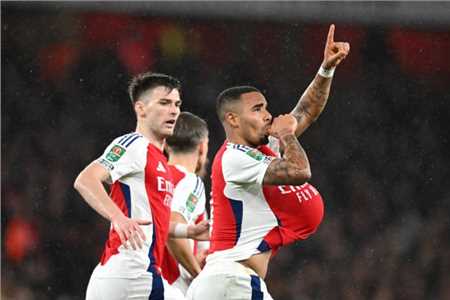 英格兰联赛杯1/4决赛主场迎战水晶宫的比赛中,热苏斯的进球帮助阿森纳将比分扳为1-1。